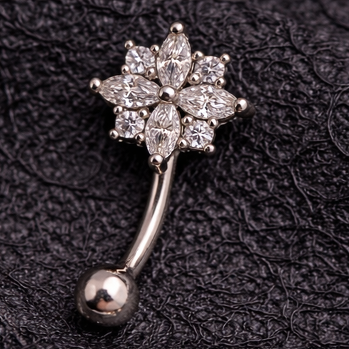 Silver Flower Navel Ring Belly Button Piercing Jewelry - 14G Surgical Steel 316L