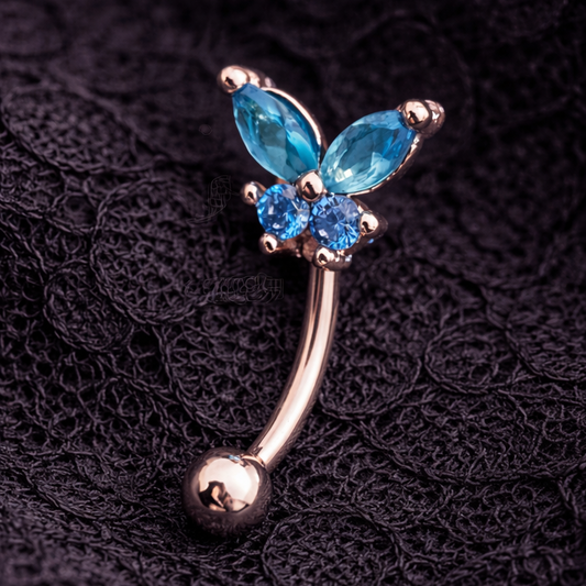 Silver Barbell for Eyebrow or Rook Piercing with Blue Butterfly Charm – 16G Stainless Steel Jewelry