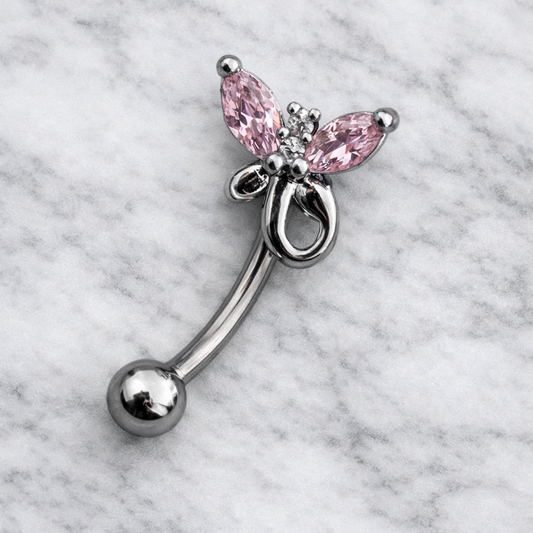 Silver Barbell with Pink Butterfly for Eyebrow or Rook Piercing – 16G Stainless Steel Jewelry