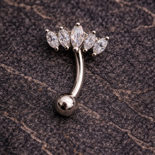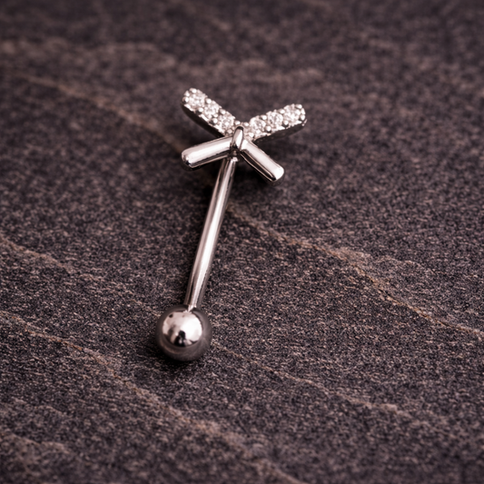 Silver Barbell with Zirconia Crown for Eyebrow or Rook Piercing – 16G Stainless Steel Jewelry