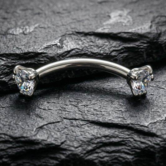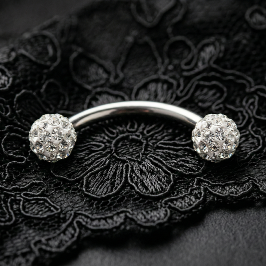 Silver Barbell with Cubic Zirconia Ends for Eyebrow or Rook Piercing – 16G Stainless Steel Jewelry