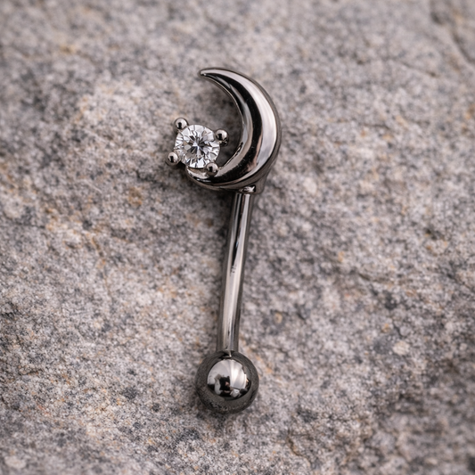 Silver Moon Barbell for Eyebrow or Rook Piercing – 16G Stainless Steel Jewelry