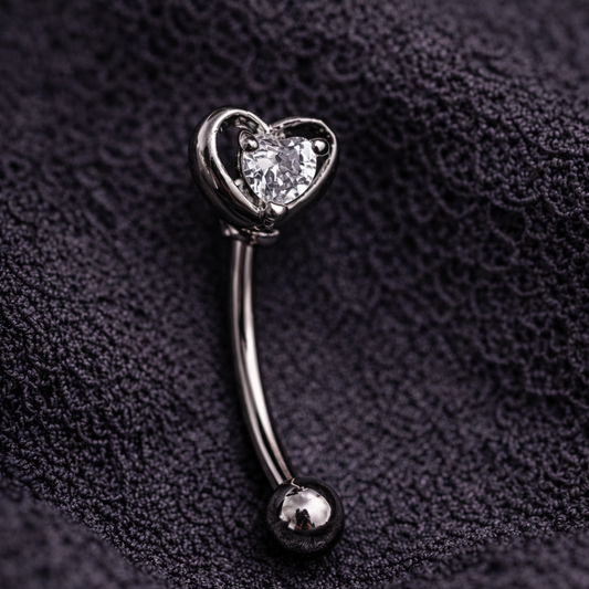 Silver Barbell with Heart Eyebrow or Rook Piercing – 16G Stainless Steel Jewelry