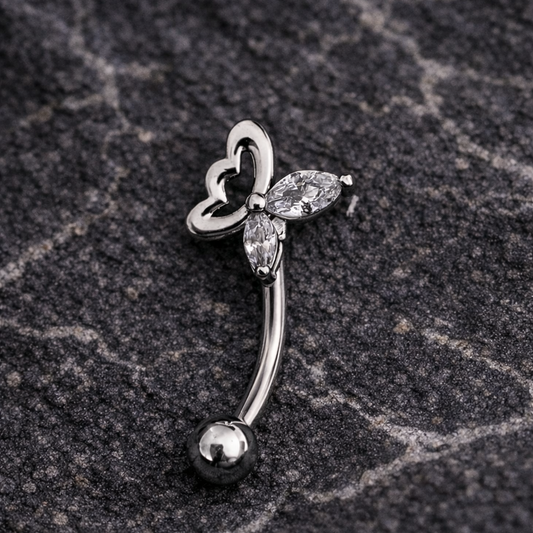 Silver Barbell with Butterfly for Eyebrow or Rook Piercing – 16G Stainless Steel Jewelry