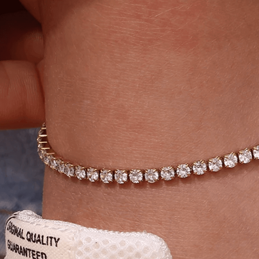 Anklet Bracelet with White CZ Jewelry 18K Gold Plated PVD Stainless Steel Tarnish Free