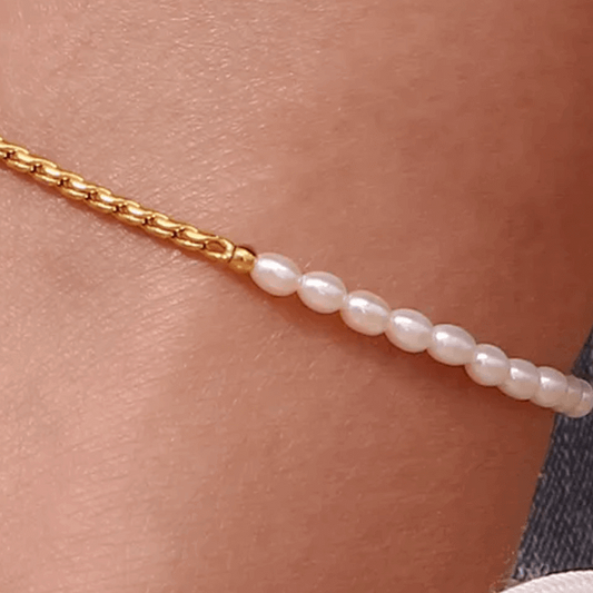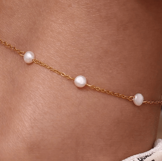 Anklet Bracelet with Fresh Water Pearls Jewelry 18K Gold PVD Stainless Steel Tarnish Free