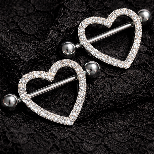Heart Shield Nipple Piercing Bars - 14G Silver Surgical Steel 316L