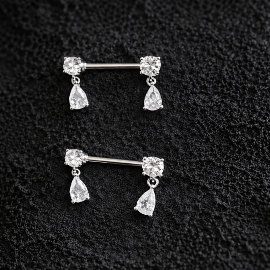 Dangle Nipple Piercing Bars with Sparkling Zirconia – 14G Surgical Steel 316L
