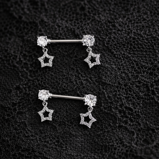 Silver Nipple Bars with Star Dangly Ends - 14G Surgical Steel 316L
