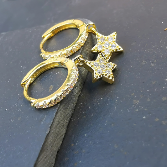 Star Cubic Zirconia Droplets 18K Gold Plated 925 Sterling Silver - Ear Piercing