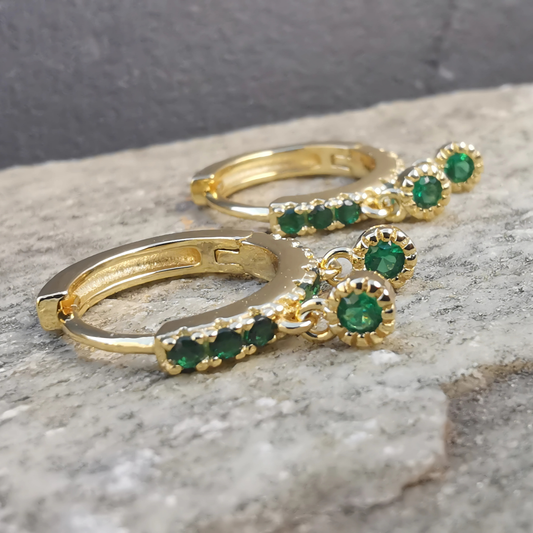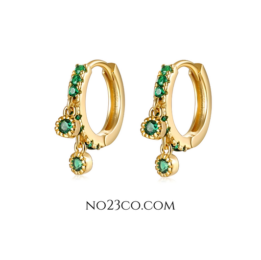 Hoop Ear Piercing Pair Green Emerald 5A Zirconia - 18K Gold Plated 925 Sterling Silver