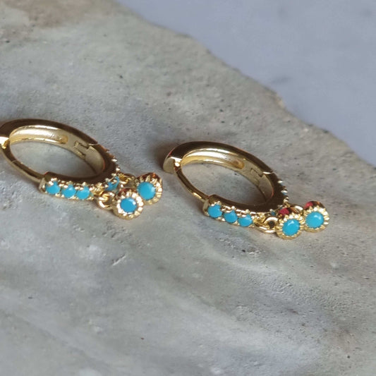 Hoop Ear Piercings Pair Turquoise 5A Zirconia - 18K Gold Plated 925 Sterling Silver