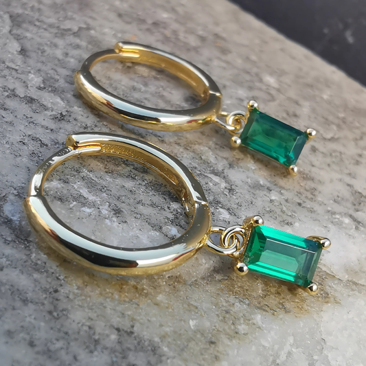 Droplet Earrings Green Rectangle Cubic Zirconia - 18K Gold Plated 925 Sterling Silver
