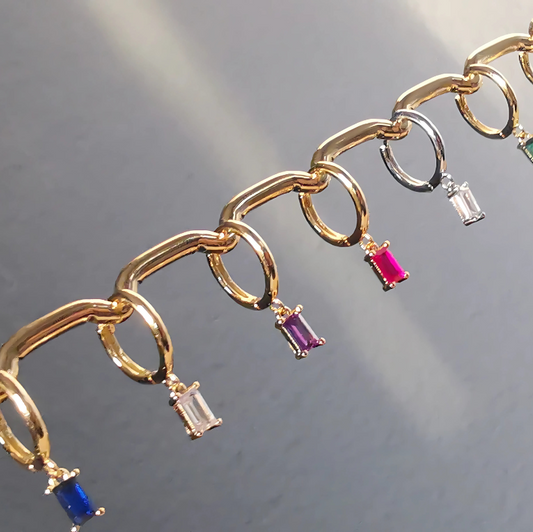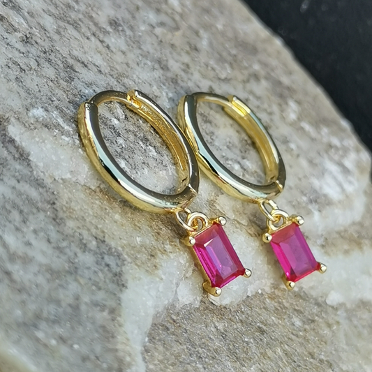 Droplet Earrings Magenta Rectangle Zirconia - 18K Gold Plated 925 Sterling Silver