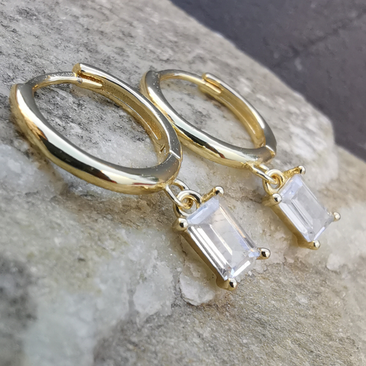 Droplets Earrings White Rectangle CZ - 18K Gold Plated 925 Sterling Silver