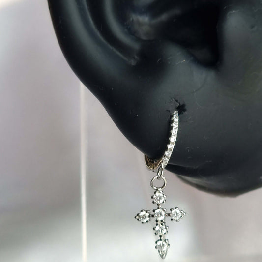 Droplets Silver Cross Earrings with Sparkling CZ Accents - 925 Sterling Silver