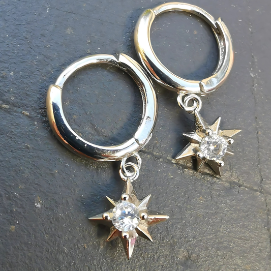 Star Droplets Earrings with 5A Cubic Zirconia - 925 Sterling Silver Ear Piercing