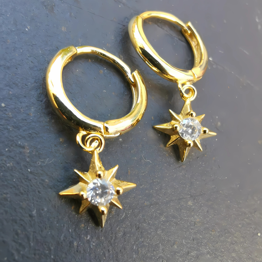 Star Droplets Earrings 5A Cubic Zirconia - 18K Gold Plated 925 Sterling Silver Ear Piercing