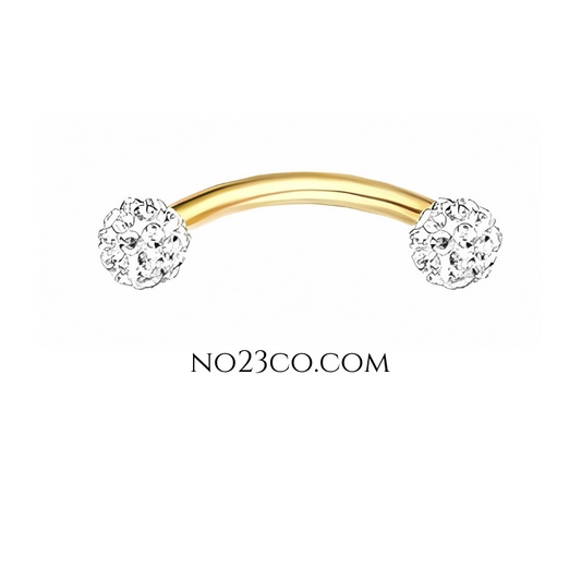 Gold Barbell with Cubic Zirconia Balls for Eyebrow or Rook Piercing – 16G Stainless Steel Jewelry