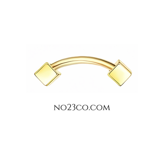 Gold Barbell with Square Design for Eyebrow or Rook Piercing – 16G Stainless Steel Jewelry