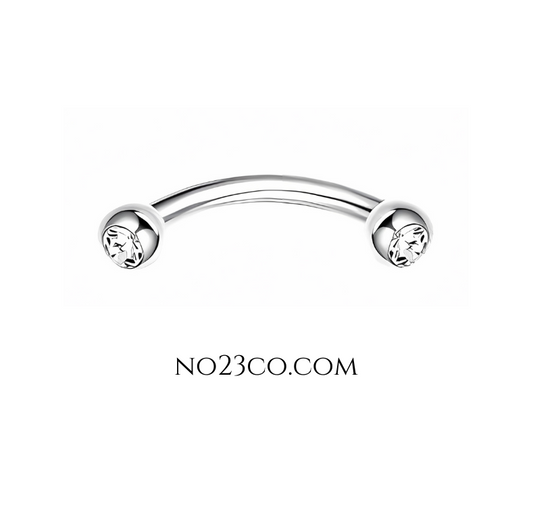 Silver Barbell with Cubic Zirconia Balls for Eyebrow or Rook Piercing – 16G Stainless Steel Jewelry