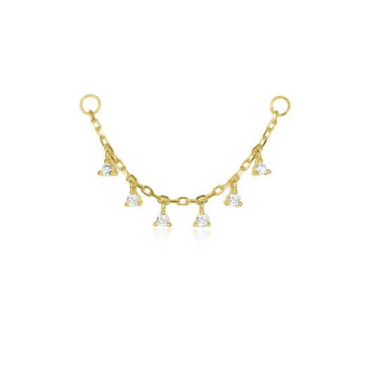 Piercing Chain with White CZ - 18K Gold Plated 925 Sterling Silver Ear Curation
