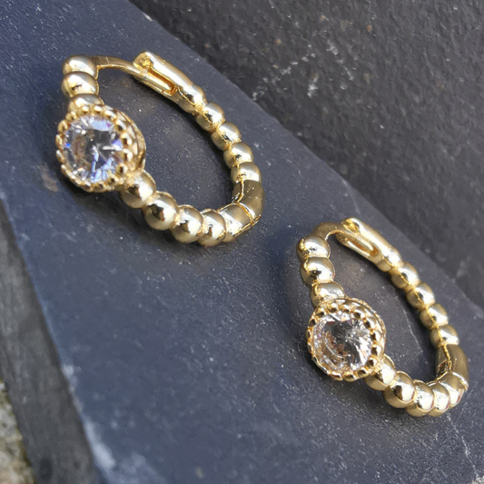 Tiny White Zirconia Hoop Earrings - 18K Gold Plated 925 Sterling Silver