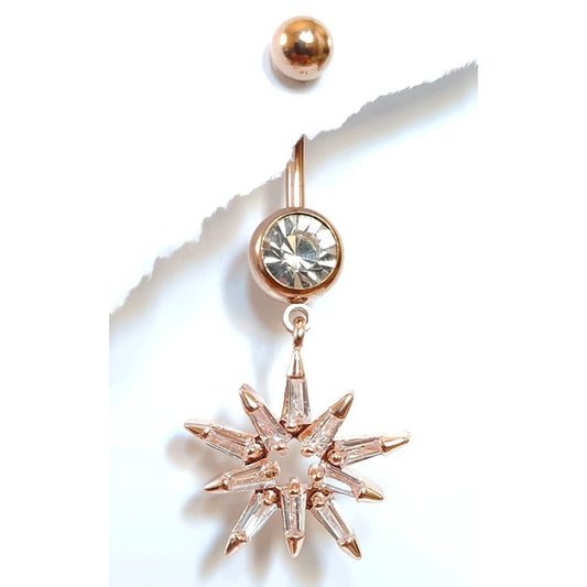 Star Dangle Navel Ring Belly Button Piercing - 14G Rose Gold Surgical Steel 316L