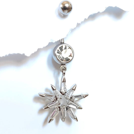 Star Dangle Navel Ring Belly Button Piercing - 14G Silver Surgical Steel 316L
