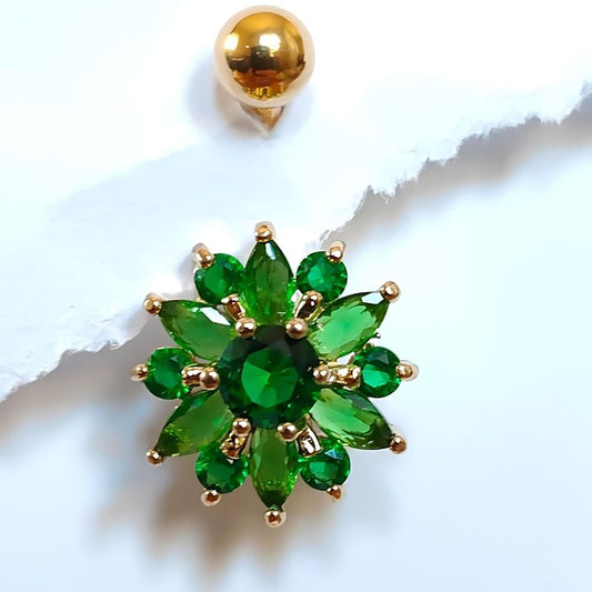 Green Flower Navel Ring Belly Button Piercing Jewelry - 14G Gold Surgical Steel 316L
