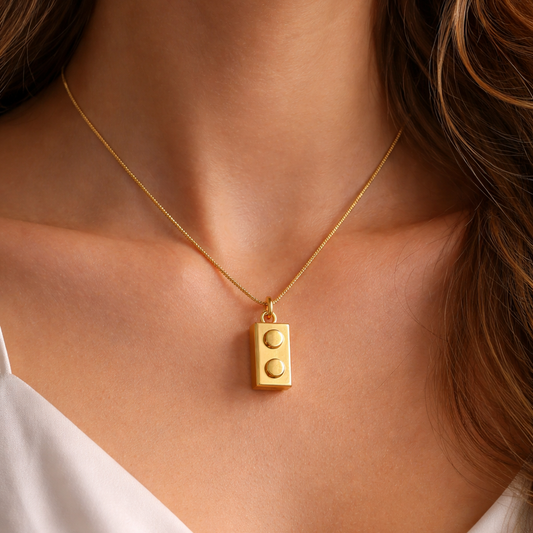 Lego Rectangle Brick Necklace - Waterproof, Sweatproof 18K Gold PVD Plated Stainless Steel