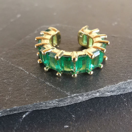 Green Gem Conch Ear Cuff No Piercing Earring Jewelry - 18K Gold Plated Copper