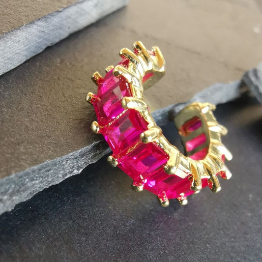 Magenta Gem Conch Ear Cuff No Piercing Earring Jewelry - 18K Gold Plated Copper