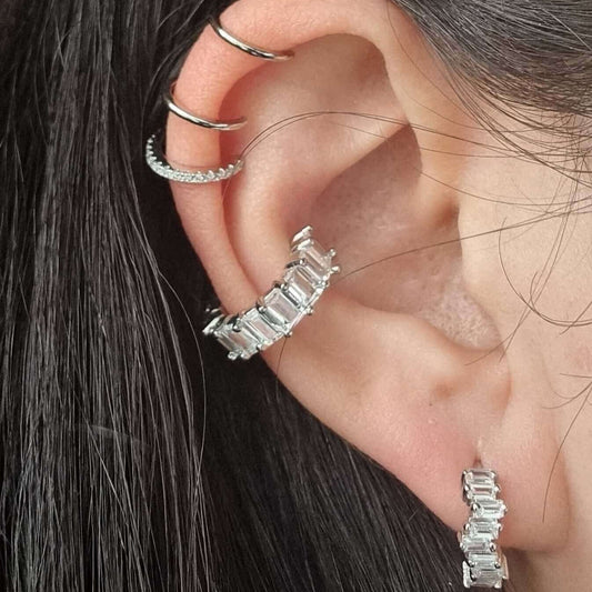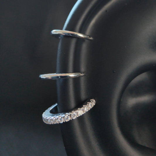 Ear Cuff Triple Hoop No Piercing Earring Jewelry - 925 Sterling Silver Platinum Plated
