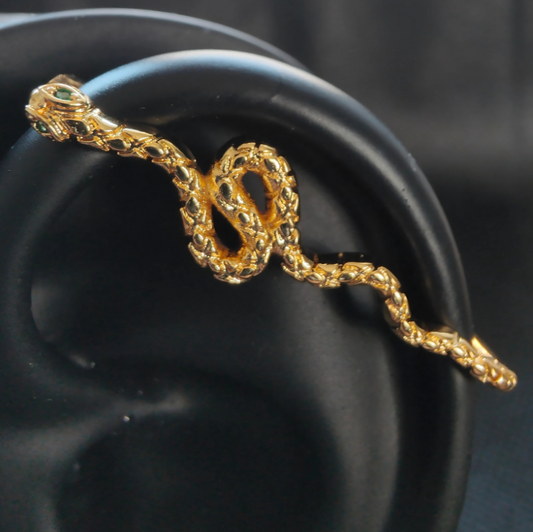 Snake Bar Gold No-Piercing Industrial Cuff Earring Jewelry - 18K Gold Plated Brass