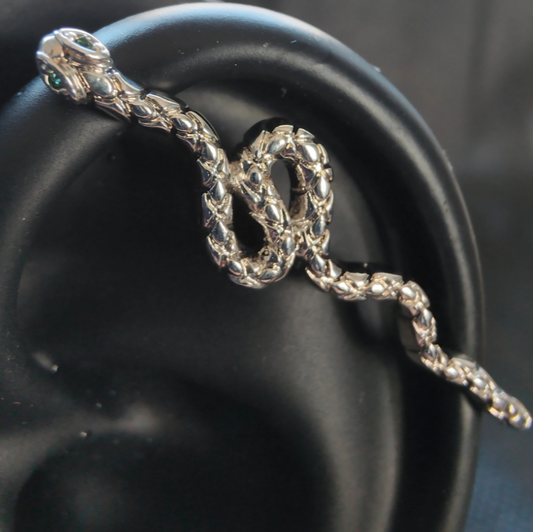 Snake Bar Silver No-Piercing Industrial Cuff Earring Jewelry - Silver Plated Brass