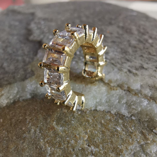 White Gem Conch Ear Cuff No Piercing Earring Jewelry - 18K Gold Plated Copper