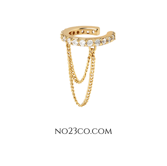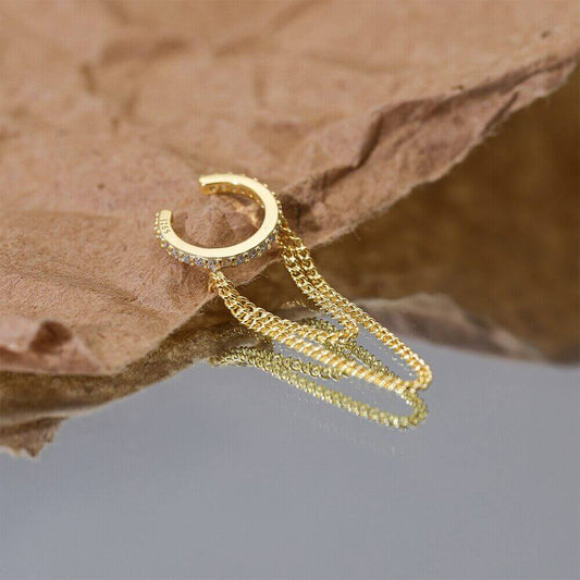No Piercing Chain Ear Cuff Jewelry Earring with White CZ - 18K Gold Plated 925 Sterling Silver