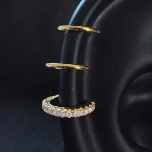 Ear Cuff Triple Hoop No Piercing Earring Jewelry - 18K Gold Plated 925 Sterling Silver