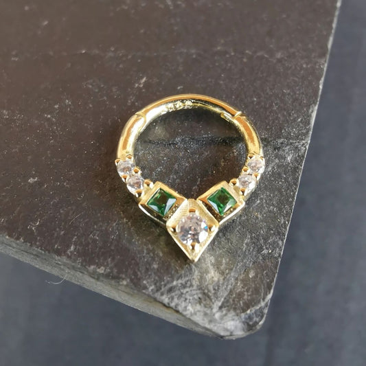 Septum & Daith Piercing Ring with Green Gem - 18K Gold Plated 925 Sterling Silver