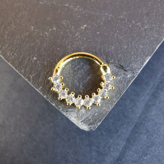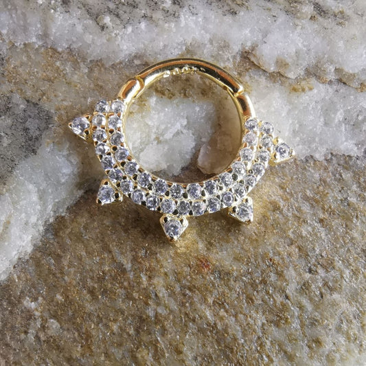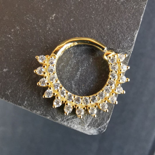 Septum & Daith Ring 18G Piercing with CZ - 18K Gold Plated 925 Sterling Silver