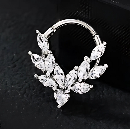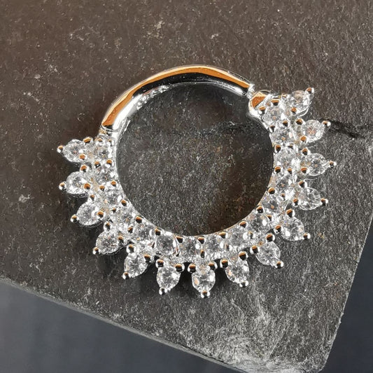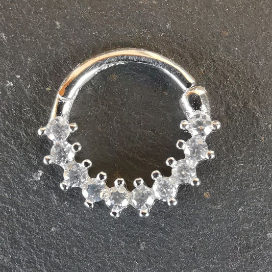 Silver 16G Septum & Daith Clicker Ring with Cubic Zirconia – 316L Surgical Steel
