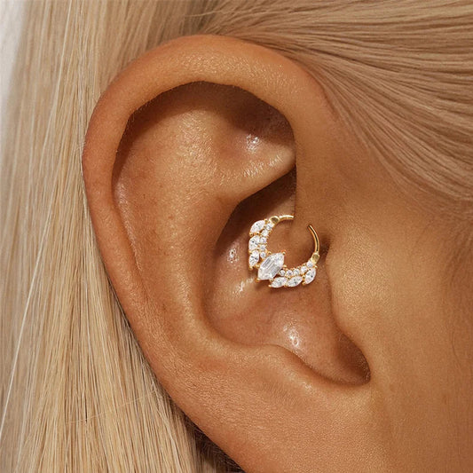 Septum & Daith Gold Ring 18G Piercing Jewelry with CZ - 18K Gold Plated 925 Sterling Silver