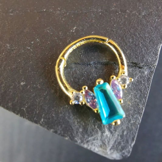 Septum & Daith Ring Piercing Jewelry with Blue and Purple CZ - 18K Gold Plated 925 Sterling Silver