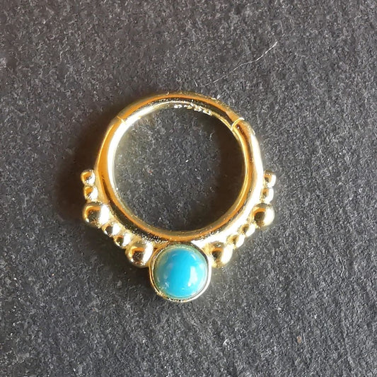 Septum & Daith Ring Piercing Jewelry with Turquoise Stone - 18K Gold Plated 925 Sterling Silver