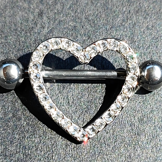Heart Shield Nipple Piercing Bars - 14G Silver Surgical Steel 316L