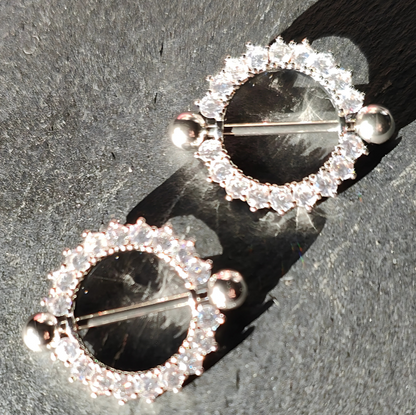 Round Nipple Shields with Clear Sparkling Cubic Zirconia - 14G Surgical Steel 316L